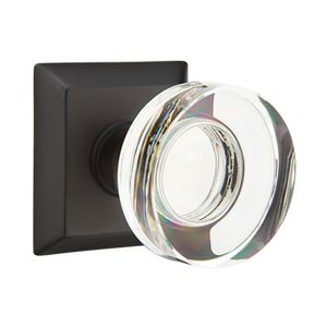 Crystal Door Hardware Collection - Modern Disc Glass Passage Door Knob with Quincy Rose in Flat Black by Emtek Hardware - 8131MDCUS19234 | MyKnobs