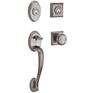Baldwin Reserve DCCOLXROUTSR152 Double Cylinder Columbus Handleset with Round Knob and Traditional Square Rose with 6AL Latch and Dual Strike Matte Antique Nickel Finish