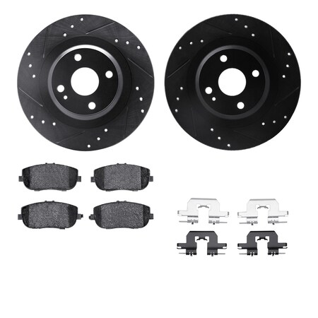 8612-80007, Rotors-Drilled, Slotted-Black w/ 5000 Euro Ceramic Brake Pads incl. Hardware, Zinc Coat