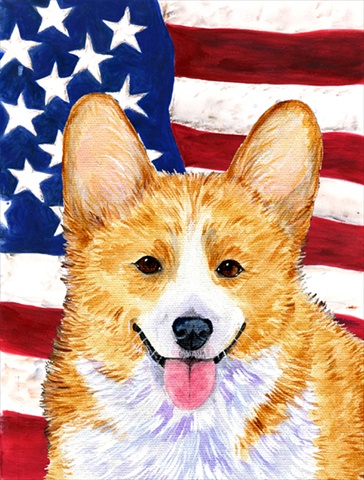 28 x 40 in. USA American Flag with Corgi House Size Canvas Flag