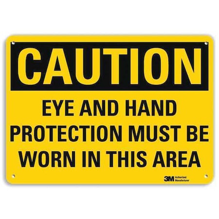 Caution Sign, Vertical Rectangle, Number of Printed Sides 1, English, Sign Format Traditional OSHA, Sign Legend Eye And Hand Protection Must Be Worn In This Area, Sign Legend Background Color Yellow, Sign Legend Style Text