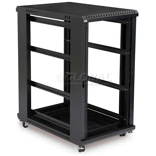 3170-3-001-22 Size: 22U Features: -Includes 2 sets of adjustable cage nut style mounting rails, preinstalled casters and levelers. -Liner collection. -Finish: Black. -No doors. -Weight capacity: 1300 lbs. -Top and bottom removable laser knockouts. Product Type: -Open rack. Mounting Type: -Cage nut. Frame Type: -Open. Finish: -Black. Wheels Included: -Yes. Thermal Management: -Passive. Stand-Alone: -Yes. Weight Capacity: -1300 Pounds. Application: -IT/Data centers/Pro A/V. Commercial Use: -Yes. Country of Manufacture: -United States. Size 22U - Size (Unit): -21U-30U. Size 27U - Size (Unit): -21U-30U. Size 37U - Size (Unit): -31U-40U. Size 42U - Size (Unit): -41U-45U. Dimensions: Overall Height - Top to Bottom: -80.4". Overall Width - Side to Side: -24". Overall Depth - Front to Back: -36".