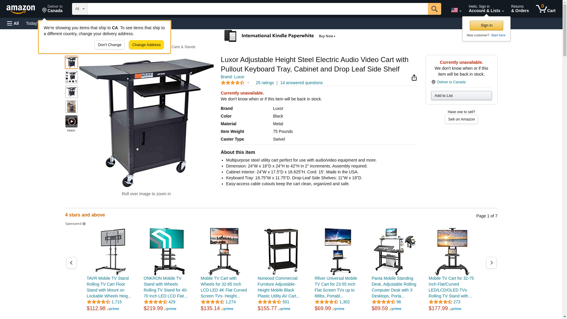Luxor - Adjustable-Height Steel AV Cart - Pullout Keyboard Tray Cabinet Drop Leaf (AVJ42KBCDL)