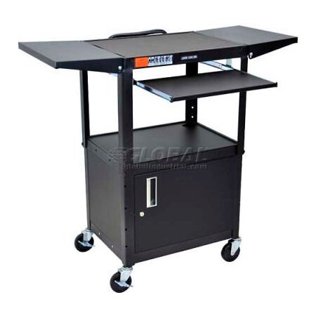 Luxor Cart, XL 42 Height Adjustable w/keyboard tray, drop leaf & cabinet,Black