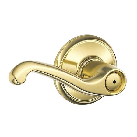 Schlage, F40-FLA-LH, Privacy, Flair, Leverset, Left Handed Flair Series SPLIT FINISH Privacy Door Leverset Perfect for Bedrooms and Bathrooms The simple elegance of the Flair Series will enhance any room's warmth and beauty. Schlage Accents levers provide an upgrade in appearance and are sure to enhance any door in your home. Accents' striking designs and elegant trim provide the finishing touches to complement your projects. Interior Screws are Exposed For Left Handed Applications Only! First Finish is the Finish of the Exterior Lever and Second Finish is the Interior Lever Finish Both levers locked/unlocked by push button inside Can be unlocked from outside with emergency key. Turning inside lever unlocks outside. Adjustable Backset 2-3/8 or 2-3/4 Faceplates (Part 16-080): Supplied with 1/4 Round Corner and Drive-In Faceplates Strike Plates (Part 10-027): Supplied with a Round Strike with Dimensions of 2-1/4 x 1-5/8