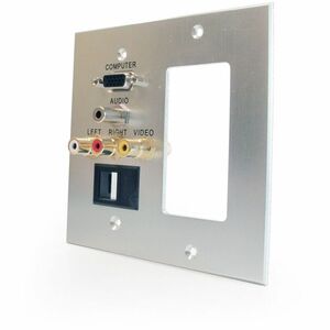 Features Brushed Anodized Aluminum Plate (1) VGA Female, Nickel plated VGA female adapter (1) 3.5mm Stereo Female (1) RCA Composite Video Female, Gold plated RCA adapters (1) RCA Stereo Audio Female Gold plated RCA adapters (1) Decora Style cutout (1) Keystone blank cutout Lifetime Warranty DescriptionComprehensive's Pass-through Wall Plates are perfect for your transition to in-wall cabling. The pass-through ports include thin, flexible pigtails that accommodate the tight bend radius required for installations within a standard junction box. The keystone blanks allow for integration with new or existing cable infrastructure for telephone or Ethernet. Constructed of brushed anodized aluminum, our wall plates are designed for durability and a long life.The Pass-through Wall Plates come with Comprehensive's Lifetime Warranty. Manufacturer: Comprehensive Cable and Connectivity Company. Manufacturer Part Number: WPPT-VARKDEC2-AC. Brand Name: Comprehensive. Product Name: Faceplate. Product Type: Faceplate. [Technical Information] Number of Gangs: 2-gang. Mount Location: Wall Mount. [Interfaces/Ports] Number of Mini-phone Ports: 1. Number of RCA Ports: 2. Number of VGA Ports: 1. [Physical Characteristics] Color: Brushed Anodized Aluminum. Weight (Approximate): 8 oz. [Miscellaneous] Environmentally Friendly: Yes. Environmental Certification: RoHS. [Warranty] Limited Warranty: Lifetime.