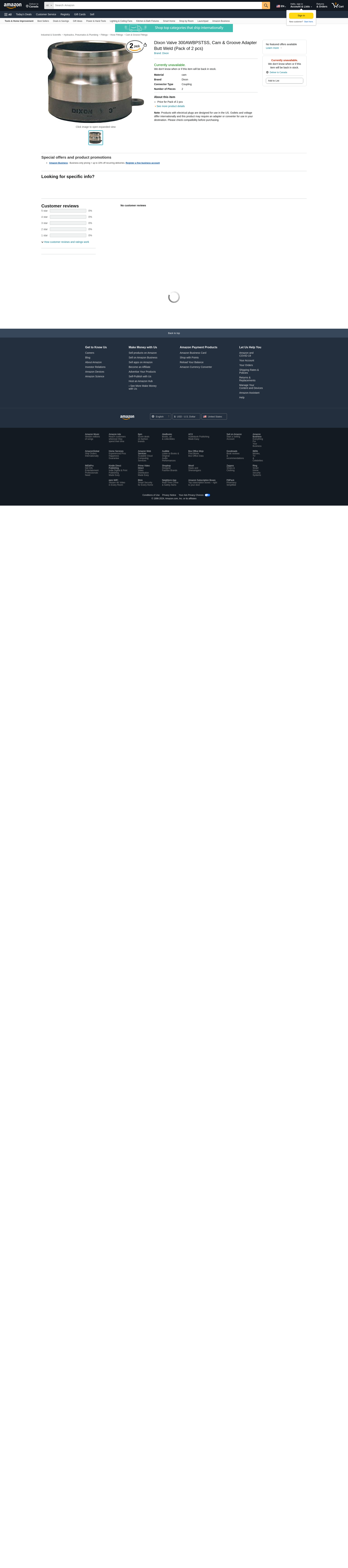 Order 300AWBPSTSS by Dixon Valve Cam & Groove Adapter Butt Weld - US Mega Store