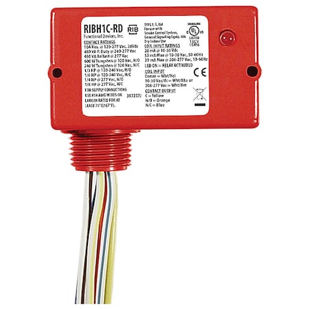 RIBH1C-RD | Enclosed Relay 10Amp SPDT 10-30Vac/dc/208-277Vac Red Hsg | Functional Devices
