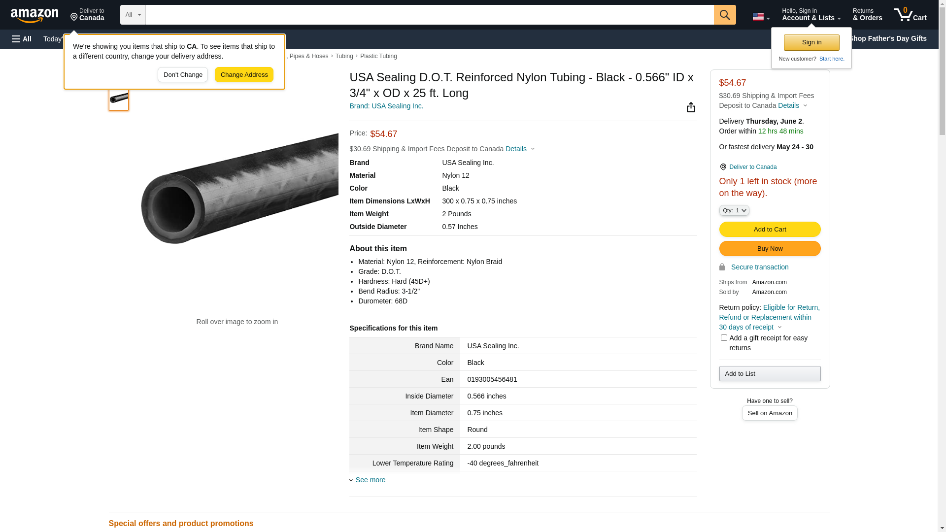 USA Sealing ZUSA-HT-2705 D.O.T. Reinforced Nylon Tubing, Black, 0.566" ID, 3/4" OD, 25' Length