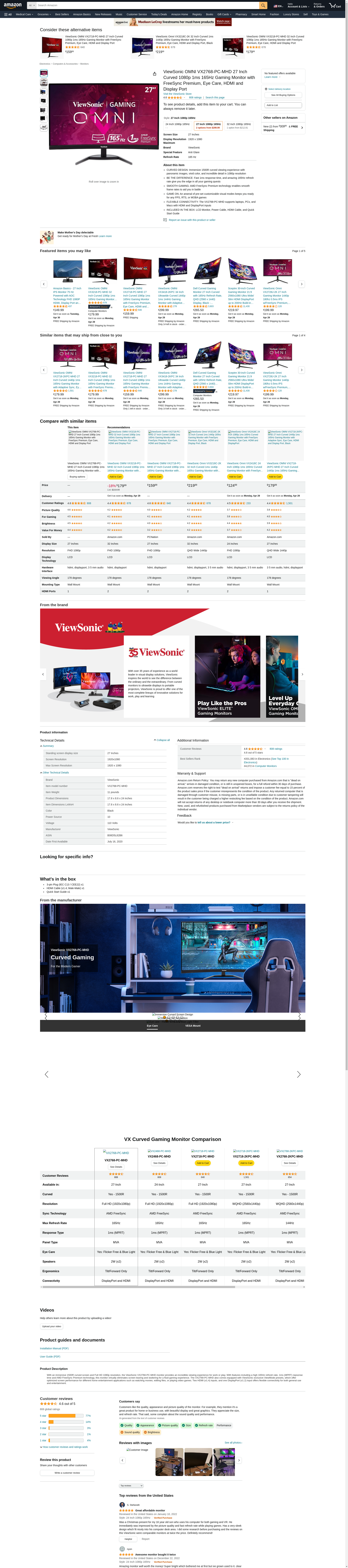 Get Fast Service & Low Prices on VX2768-PC-MHD ViewSonic MN VX2768-PC-MHD 27165HZ Curved Gaming Monitor 1920X1080 Resolution and Much More at PROVANTAGE.