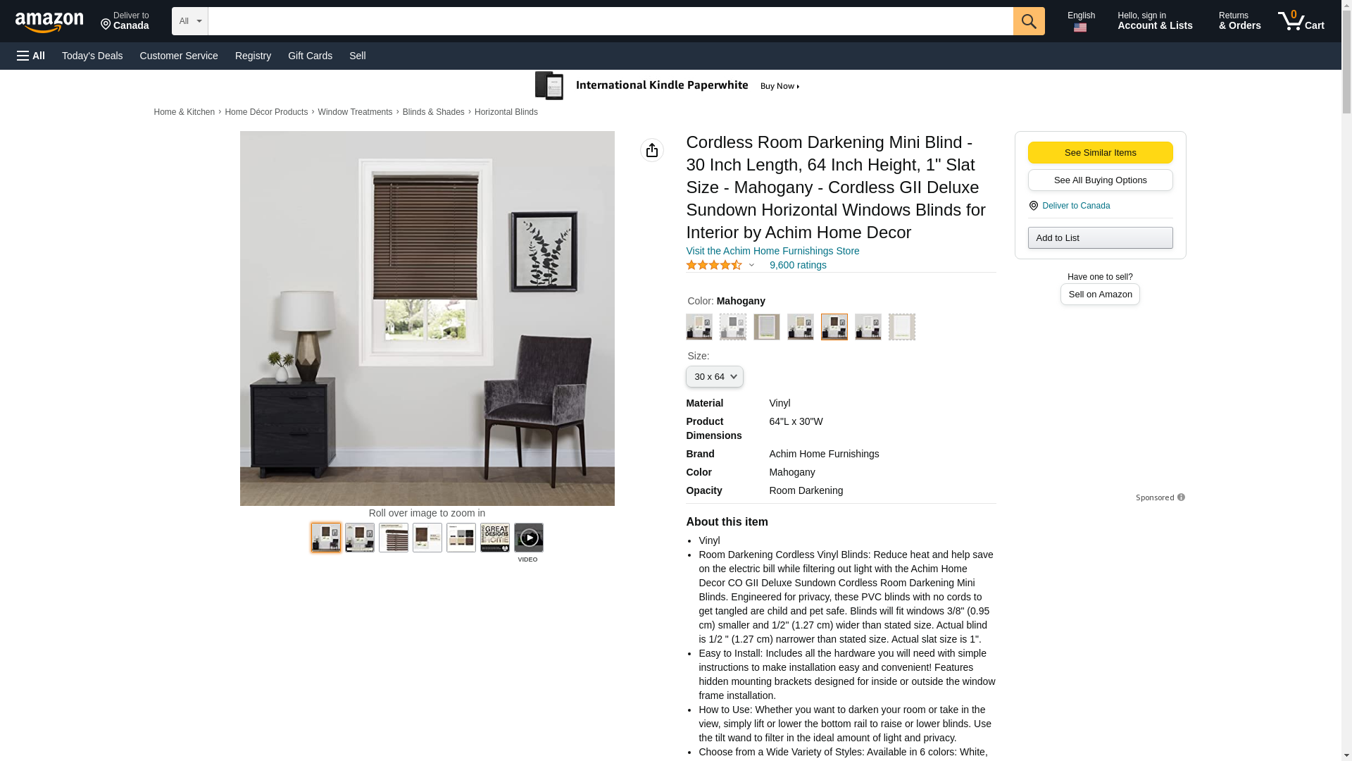 Cordless Room Darkening Mini Blind - 30 Inch Width, 64 Inch Length, 1" Slat Size - Mahogany - Cordless GII Deluxe Sundown Horizontal Windows Blinds for Interior by Achim Home Decor