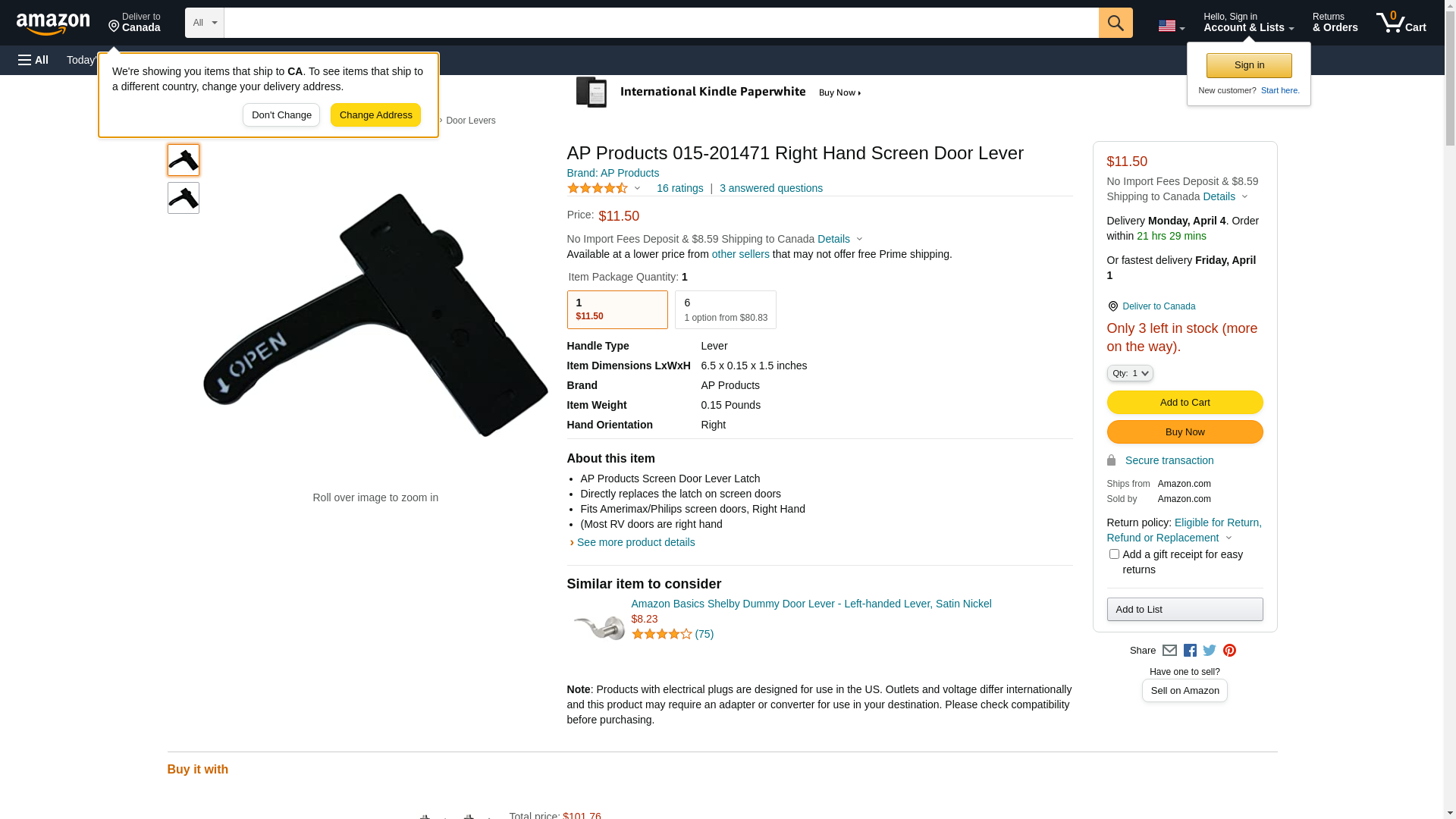| Feature | AP Products Screen Door Lever Latch |