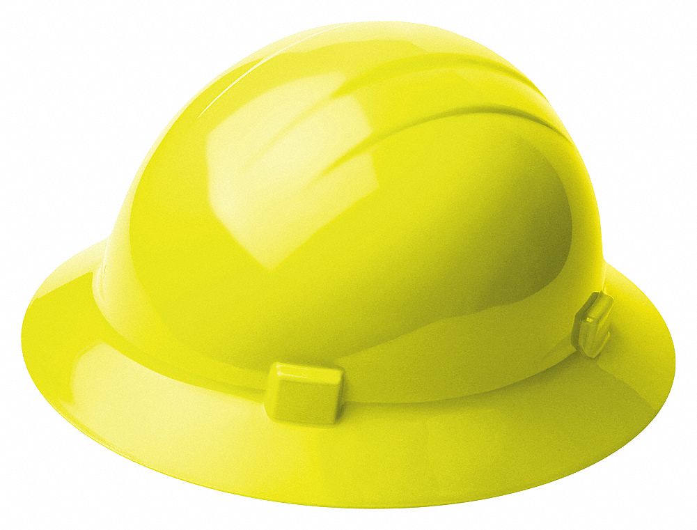 HARD HAT, FULL BRIM, TYPE 2, 4-POINT RATCHET, CSA E, HIGH-VIS LIME, SIZE 6 1/2-8, POLYETHYLENE