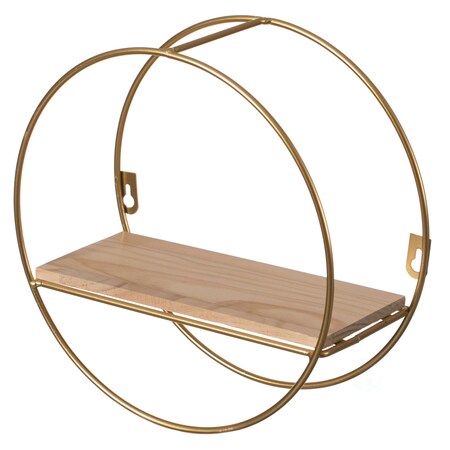 Decorative Modern Round Accent Floating Shelf Circle Decor Display Wall Mounted Rack with Metal Frame and Wood Shelf, Gold