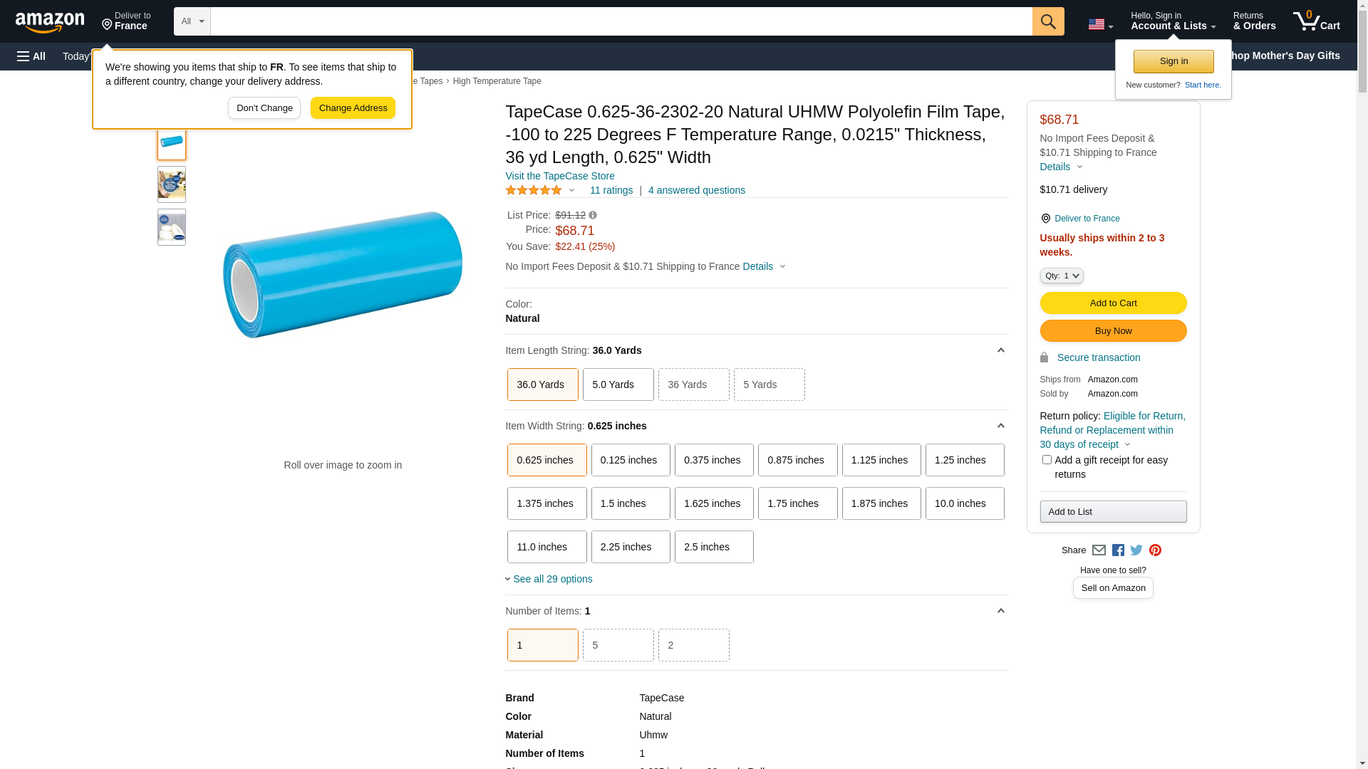 TapeCase 0.625-36-2302-20 Natural UHMW Polyolefin Film Tape, -100 to 225 Degrees F Temperature Range, 0.0215" Thickness, 36 yd Length, 0.625" Width