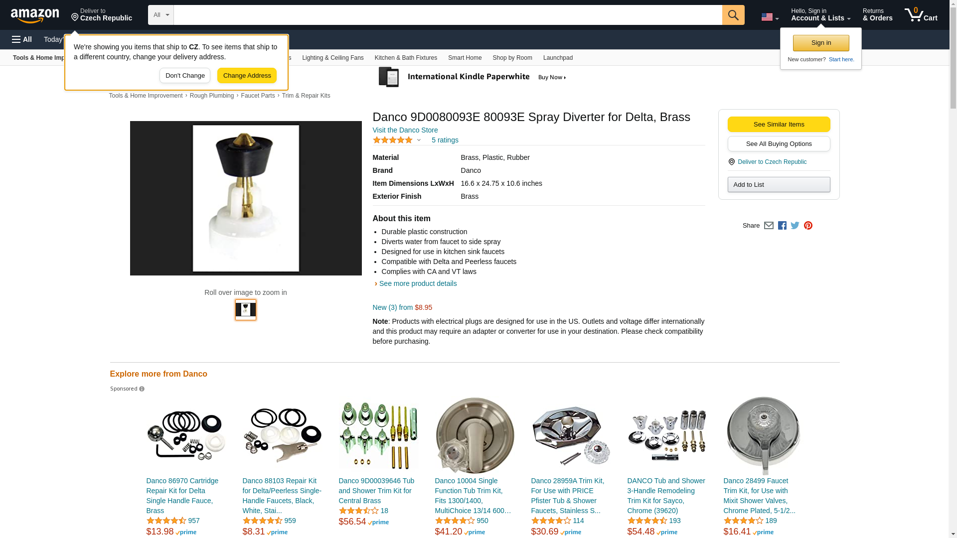 Danco 9D0080093E 80093E Spray Diverter for Delta, Brass