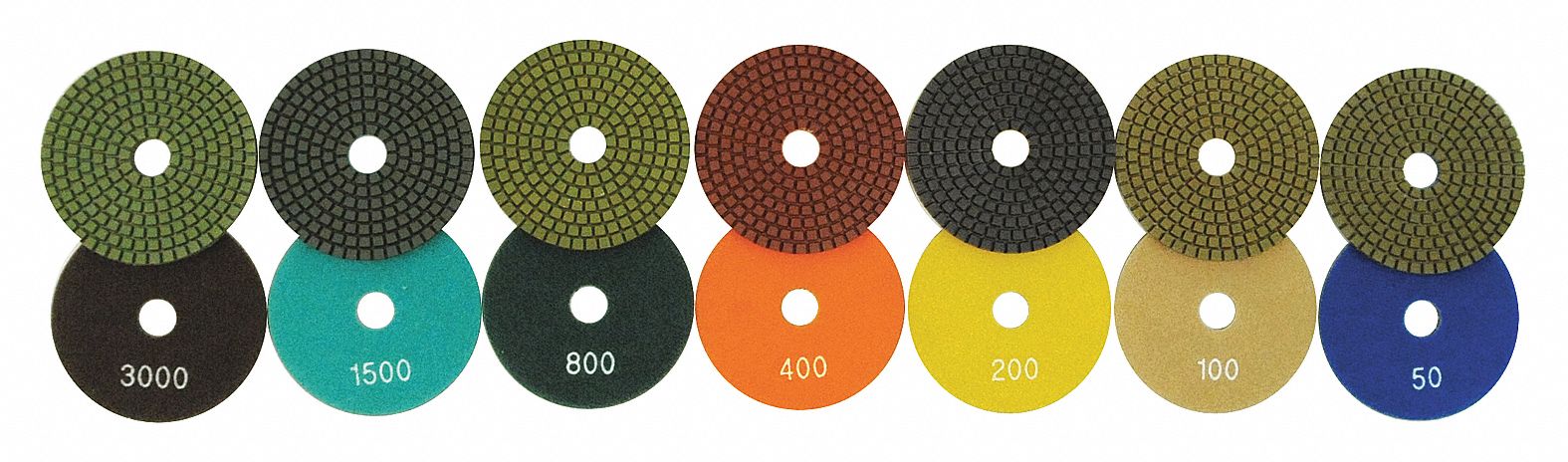 - Price For: Each Material: Diamond Item: Polishing Pad Dia. (In.): 4" Application: Stone Includes: Polishing Pad Works With: Grinder, 200 Grit Type: Standard Country of Origin (subject to change): China
