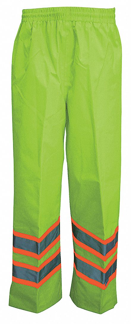 | Feature | "<b>Price For:</b> Each <b>Material</b>: 300D Trilobal Rip-Stop Polyester, Waterproof Breathable <b>Closure Type</b>: Drawstring Waist <b>Seam Style</b>: Taped, Heat Sealed <b>Resists</b>: Water, Cold, Wind <b>Liner Material</b>: Polyester <b>Gender</b>: Men's <b>Item</b>: Rain Pants <b>Number of Pockets</b>: 0 <b>ANSI Class</b>: Class E Level 2 <b>Thickness</b>: 0.40mm" |