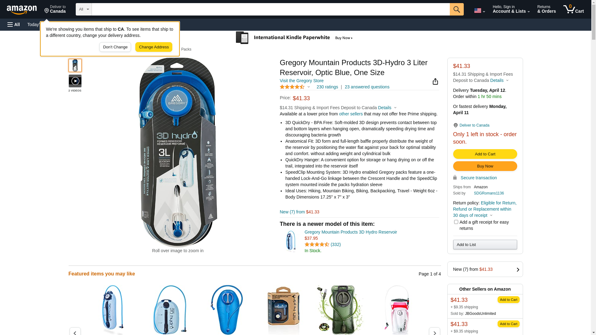 Gregory Mountain Products 3D Hydro 3 L Reservoir Backpack, One Size, Optic Blue