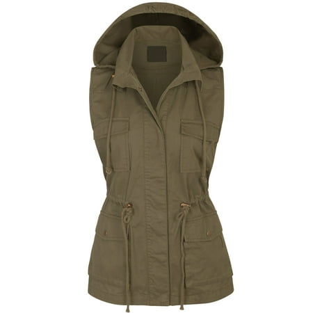 KOGMO Womens Military Anorak Safari Utility Vest with Hood