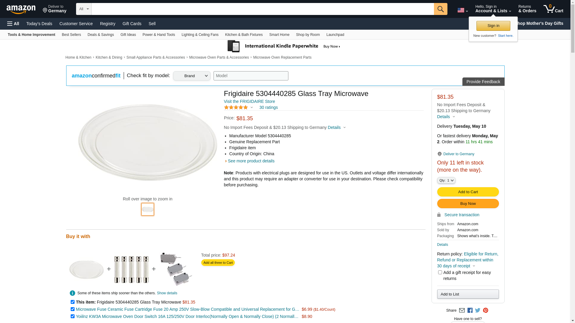 - This microwave tray replaces Frigidaire part # : 5304440285