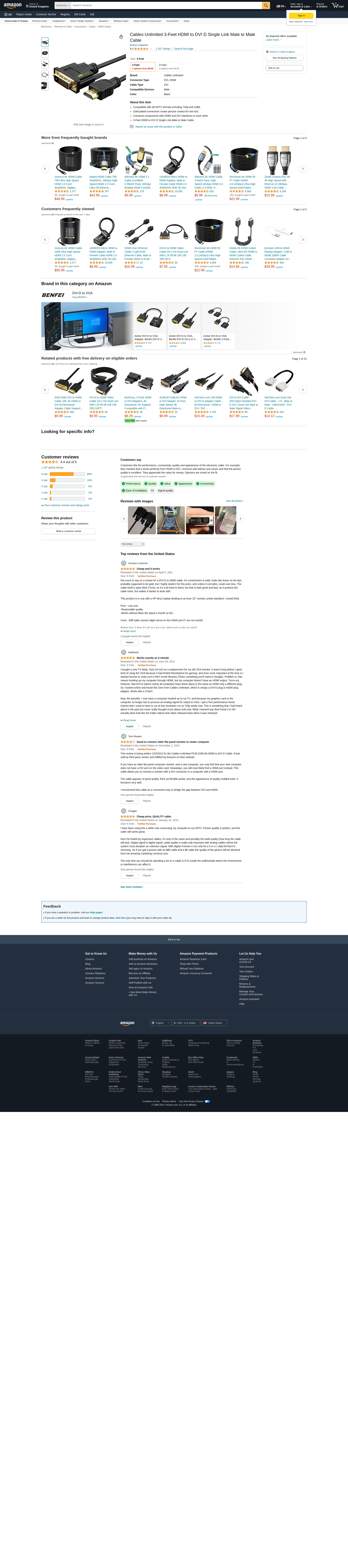 Cables Unlimited 3-Feet HDMI to DVI D Single Link Male to Male Cable: Maxedbuy.com