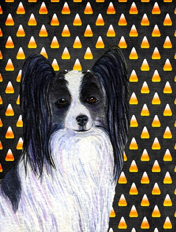 Carolines Treasures SS4298CHF Papillon Candy Corn Halloween Portrait Canvas Flag - House Size, 28 x 40 in.