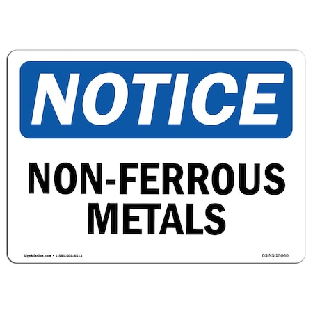 OSHA Notice Sign - Non-Ferrous Metals | Rigid Plastic Sign | Protect Your Business, Construction Site, Warehouse & Shop Area | Made in the USA