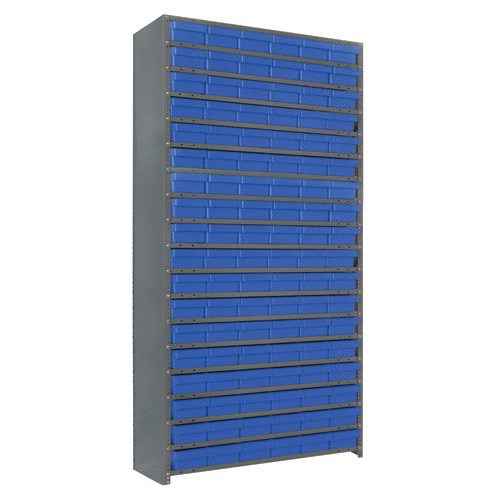 Quantum Storage Systems CL1275-401BL Closed Shelving System with Super Tuff Euro Drawers, 108 QED401 Shelf Bins, 12" D x 36" W x 75" H, Blue