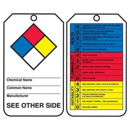 Accuform THS101CTP Hazardous Material Tag, Legend"(NFPA Diamond/Hazard Code Index)", 5.75" Length x 3.25" Width x 0.010" Thickness, PF-Cardstock, Blue/Red/Yellow/Black on White (Pack of 25)
