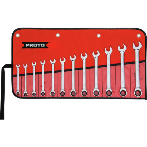 Proto JSCRMT-12S 12 Piece Full Polish Metric Combination Non-Reversible Ratcheting Wrench Set - 12 Point