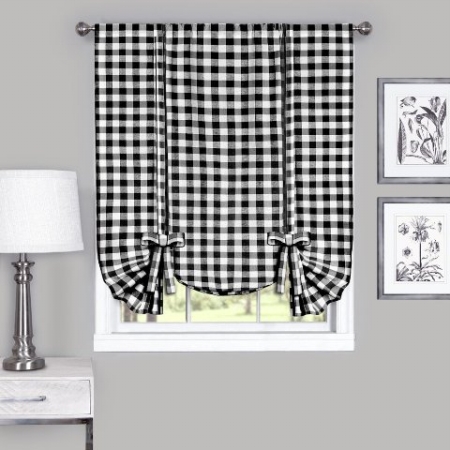 Buffalo Check Tieup Window Curtain - 42 Inch Width, 63 Inch Length - Black & White Plaid - Light Filtering Farmhouse Country Drapes for Bedroom Living & Dining Room by Achim Home Decor