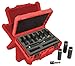 Without reliable impact sockets, your impact driver or wrench is useless. No matter which tool you prefer, it will be infinitely improved when utilizing the Milwaukee 9 Piece Impact Socket Set. 8 of the most commonly used sockets are included, 3/8", 7/16", 1/2", 9/16", 5/8", 11/16", 3/4", 7/8", as well as a 1/4" Hex to 1/2" Square adapter. The components are made of Chromoly Steel and given Custom Heat Treatment for amazing strength in high torque applications. Also included is an essential tough storage, to protect your precious bits from external damage. You'll notice the Milwaukee difference right away. Highlights: Contains 8 of the most commonly used sockets: 3/8", 7/16", 1/2", 9/16", 5/8", 11/16", 3/4", 7/8" 1/4" Hex to 1/2" Square adapter included Tough storage case protects all the components from external damage Chromoly Steel & Custom Heat Treatment give the sockets unprecedented toughness in high torque applications 1x 3/8" Socket 1x 7/16" Socket 1x 1/2" Socket 1x 9/16" Socket 1x 5/8" Socket 1x 11/16" Socket 1x 3/4" Socket 1x 1/4" Hex to 1/2" Square adapter 1x Storage Case