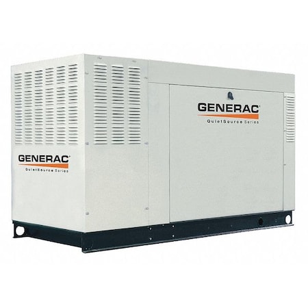 GENERAC QT03624GNAX Automatic Standby Generator Liquid-Cooled 36 kW 45 kVA Rating 120/208 Voltage 125 Amps 3 Phase 60 Hz Natural Gas/LP Vapor Fuel Engine RPM 1800 Engine Size 2.4 Liter Length 77 In Height 45 In Width 33.5 In 3/4 Fuel NPT Pipe Connection Battery Requirements 12 Volts Battery Requirements Min Amp Hr 525 CCA Battery Requirements Group 24F Sound Level dBA 58 Installation Requires Local Permits For Gas Piping Concrete Foundation Electrical Inspection And Approval