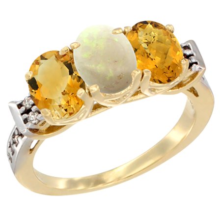 10K Yellow Gold Natural Citrine, Opal & Whisky Quartz Ring 3-Stone Oval 7x5 mm Diamond Accent, sizes 5 - 10
