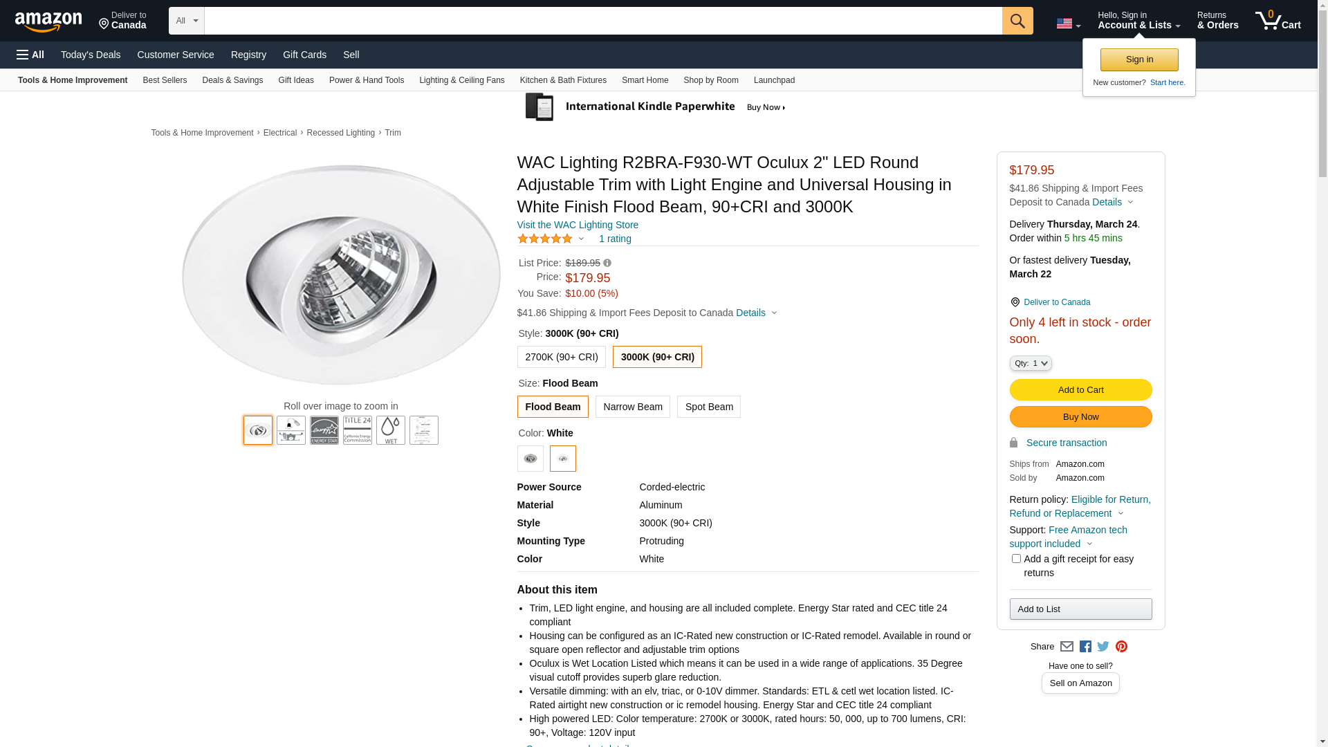 - High powered LED: Color temperature: 2700K or 3000K, rated hours: 50, 000, up to 700 lumens, CRI: 90+, Voltage: 120V input