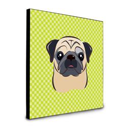 Carolines Treasures BB1324UP88 8 x 8 x 0.625 in. Checkerboard Lime Green Fawn Pug Artwork Panel Wall Decor