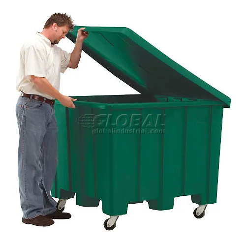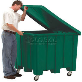 Rotational Molding Plastic Gaylord Pallet Container w/Lid, Casters 02-307220 - 50x50x36-1/2, Green