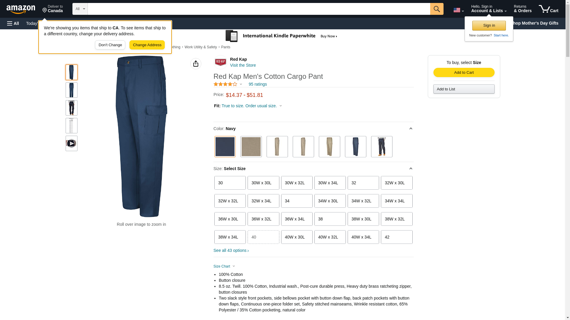 | Manufacturer | "Red Kap Men's Apparel" |