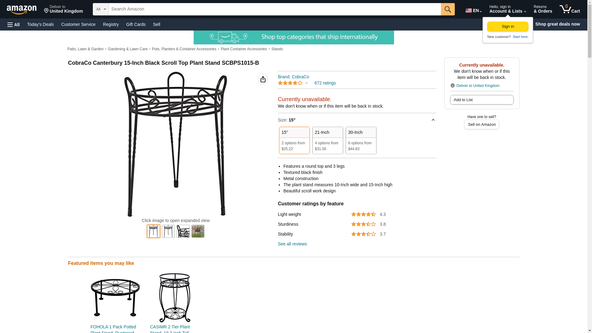 - The plant stand measures 10-Inch wide and 15-Inch high