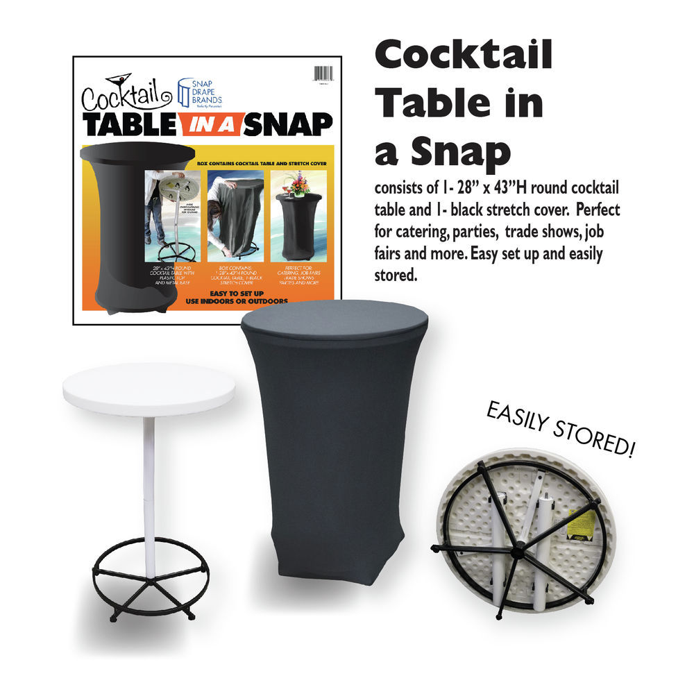 Snap Drape COCKTAIL TABLE IN A SNAP 28 X 43 COCKTAIL TABLE WITH BLACK BUDGET STRETCH COVER