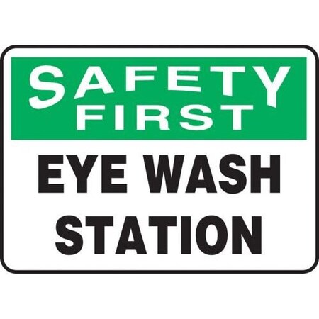 Accuform MFSD982VA Aluminum Safety Sign, Legend "Safety First Eye WASH Station", 10" Length x 14" Width, Green/Black on White