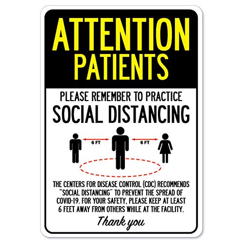 COVID-19 Notice Sign - Attention Patients Practice Social Distancing | Vinyl Decal | Protect Your Business, Municipality, Home & Colleagues | Made in The USA