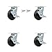 Rubber on Cast Iron Swivel Top Plate Caster Set of 4 w/6" x 2" Black Wheels-Includes 2 Swivel with Brakes and Bolt on Swivel Locks & 2 Swivel with Brakes-1800 lbs Total Cpty-Service Caster Brand