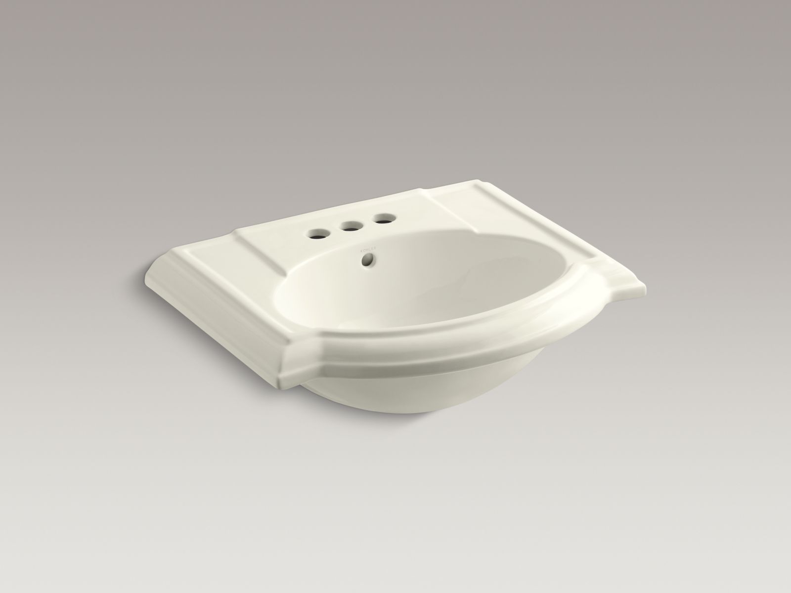 KOHLER K-2287-4-96 DEVONSHIRE 24 INCH PEDESTAL BATHROOM SINK WITH 3 HOLES DRILLED AND OVERFLOW, BISCUIT