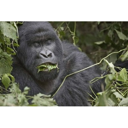 Panoramic Images Stretched Canvas Art - Close-up of a Mountain gorilla (Gorilla beringei beringei) eating leaf, Rwanda - Medium 16 x 11 inch Wall Art Decor Size.