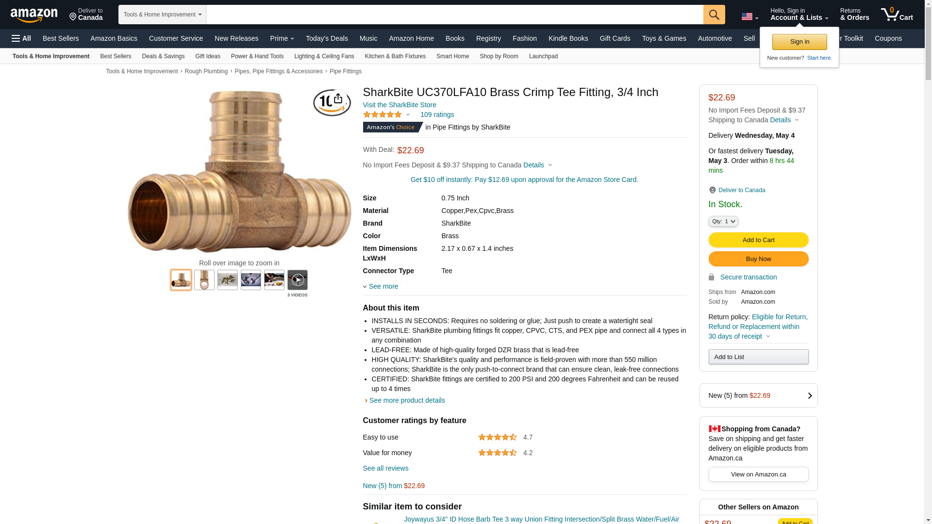 - SHARKBITE BRASS CRIMP TEE: This SharkBite brass crimp tee coupling is a full-flow fitting that is used to make a connection between two PEX pipes of the same sizes using copper crimp rings or stainless steel clamps