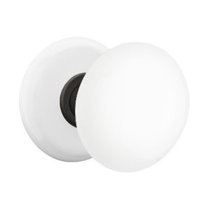 Porcelain Door Hardware Collection - Privacy Ice White Knob With Porcelain Rosette and Oil Rubbed Bronze Center Ring by Emtek Hardware - 8040IWUS10B-238 | MyKnobs