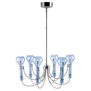 Lite Source Inc Source LS-17836L/BLU Bulbus 6-Lite Pendant Lamp with Light Blue Glass Shade, Polished Steel