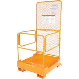 When not in use, VESTIL Folding Work Platform folds to a mere 11-5/8"H for more efficient use of storage space. One person can neatly fold the 38"H handrail with 23-1/2"H mid-rail and expanded metal back riser into the 4" deep base. Dual access gates on either side of platform for easier entry/exit. All-steel construction. Includes platform with slip-resistant checker pattern, 35"W locking gates, tine lock, lanyard attachment point, and safety restraint that attaches platform to fork truck. Durable yellow powder coat finish.